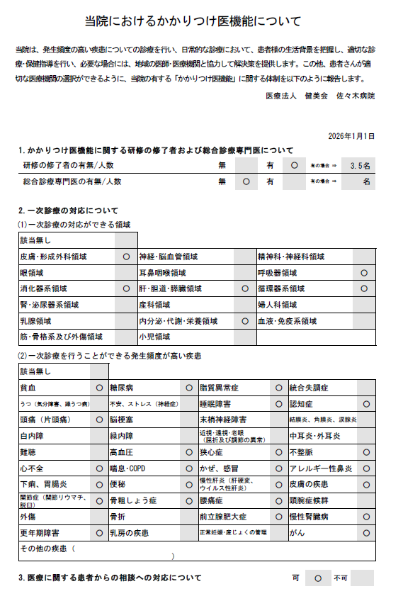 この他、患者さまが適切な医療機段の選択ができるように、当院の有する「かかりつけ医機能」に関する体制を以下のように報告します。